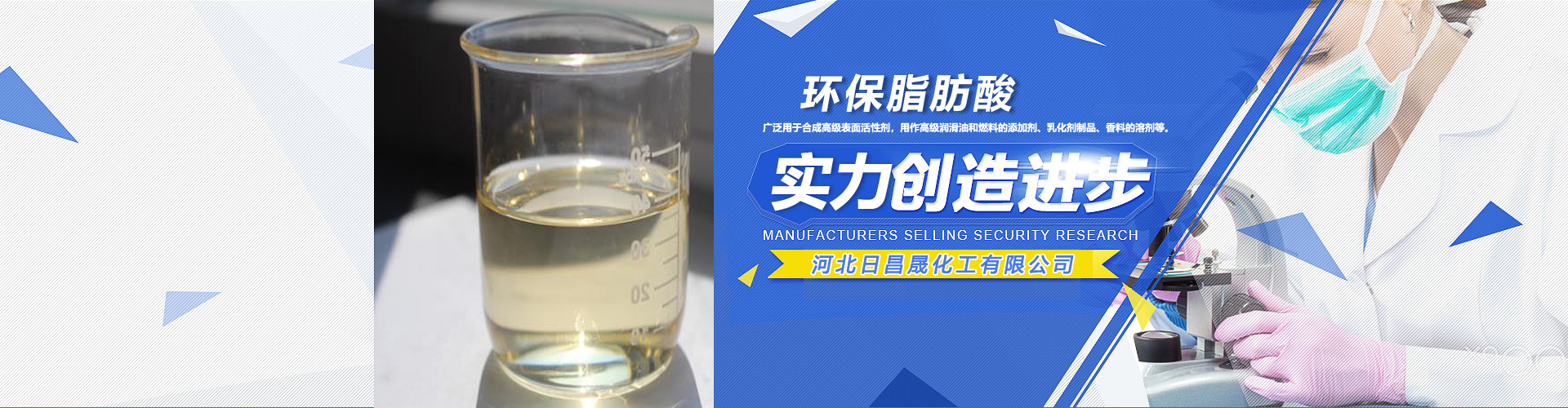 河北日昌晟化工有限公司主要生產(chǎn)植物油酸、脂肪酸、硬脂酸、植物瀝青、甘油等產(chǎn)品